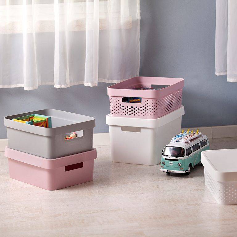 Le modèle de la série Infinity est fabriqué en plastique avec une surface lisse, ce qui facilite le nettoyage. Le couvercle ajusté protège le contenu, et la forme bien pensée permet d'empiler les boîtes les unes sur les autres, économisant ainsi de l'espace. Le produit est disponible en plusieurs capacités, ce qui permet de l'adapter à différents besoins et de créer des ensembles de rangement cohérents.