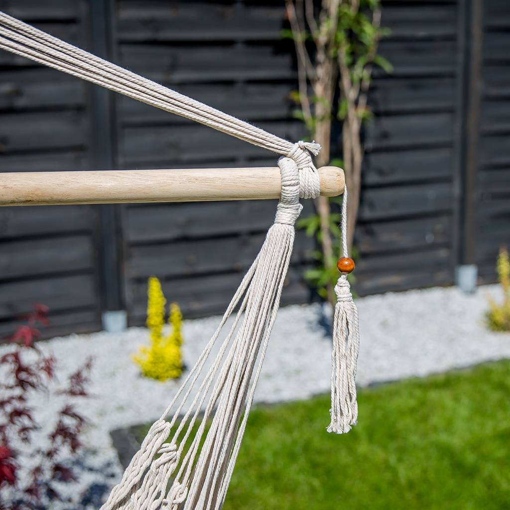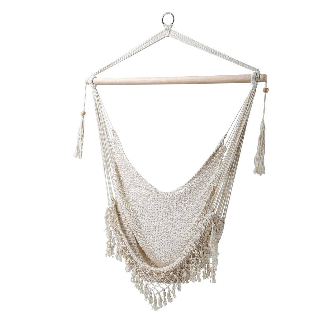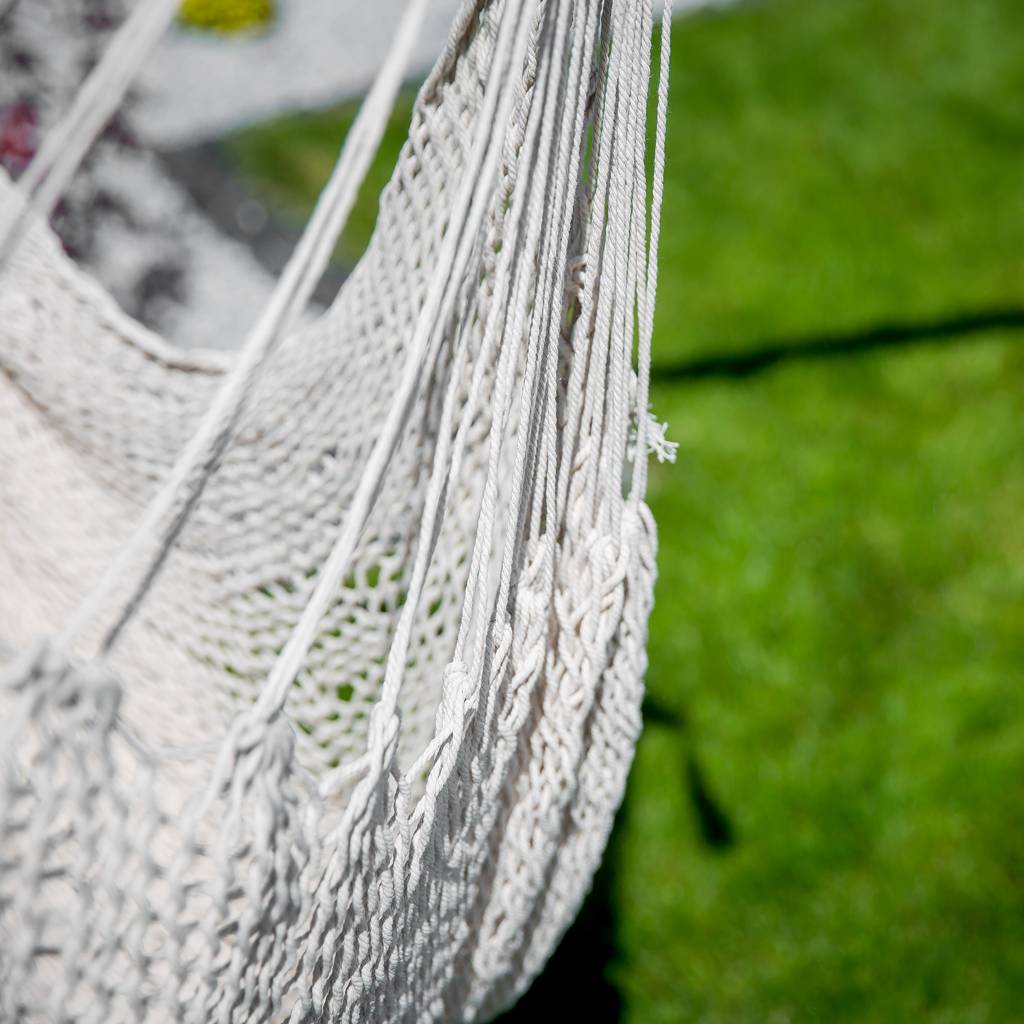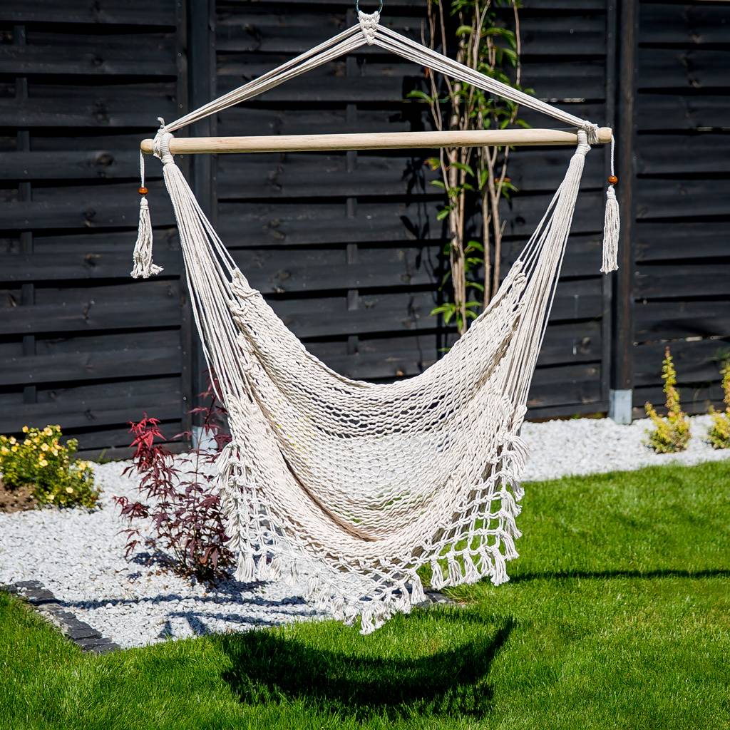 La chaise brésilienne de couleur écru est une excellente alternative au hamac traditionnel, offrant un confort de détente exceptionnel. Idéale pour se reposer, lire un livre ou siroter un café. Grâce à ses dimensions compactes, elle peut être facilement suspendue à l'intérieur, sur un balcon ou dans le jardin. La chaise brésilienne est facile à plier et ne prend pas beaucoup de place, ce qui facilite son transport et son rangement. La fabrication en polycoton assure la durabilité et la facilité de nettoyage. De plus, la chaise permet un positionnement confortable du corps, soulageant ainsi la colonne vertébrale.