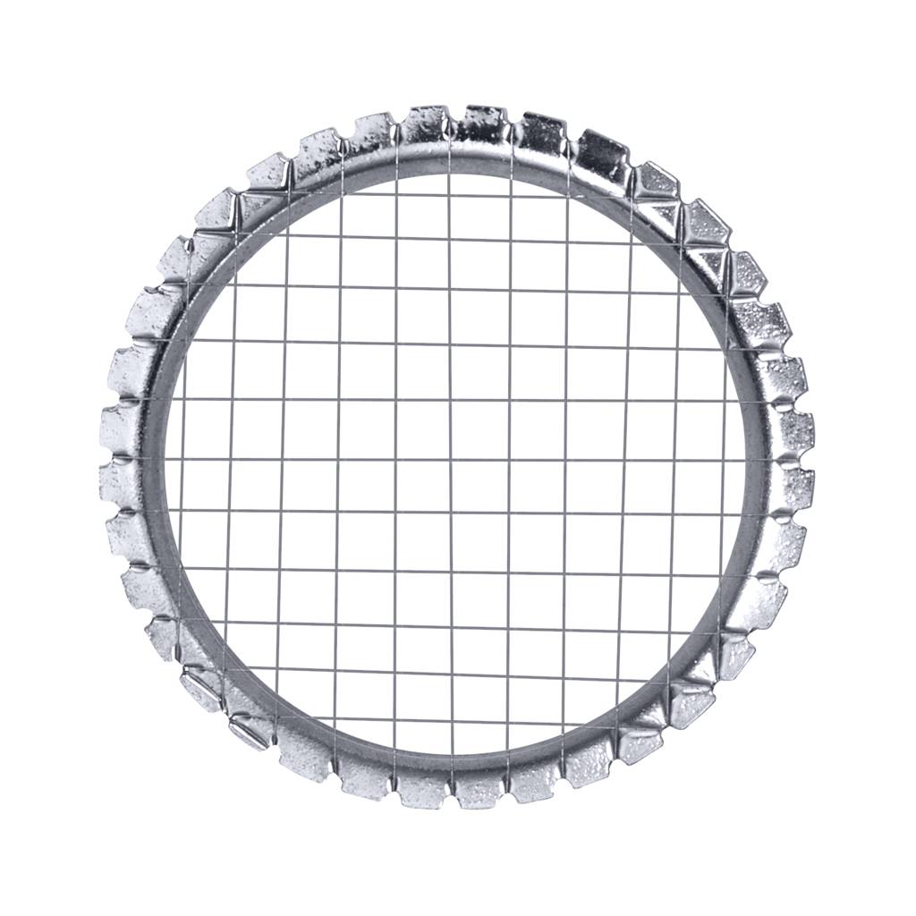 La surface de travail en métal avec de gros trous permet de broyer rapidement les produits en morceaux distincts et plus grands. Sa forme stable permet de travailler confortablement au-dessus d'un bol ou directement au-dessus d'un plat. C'est un accessoire pratique pour la préparation des légumes dans la cuisine domestique.