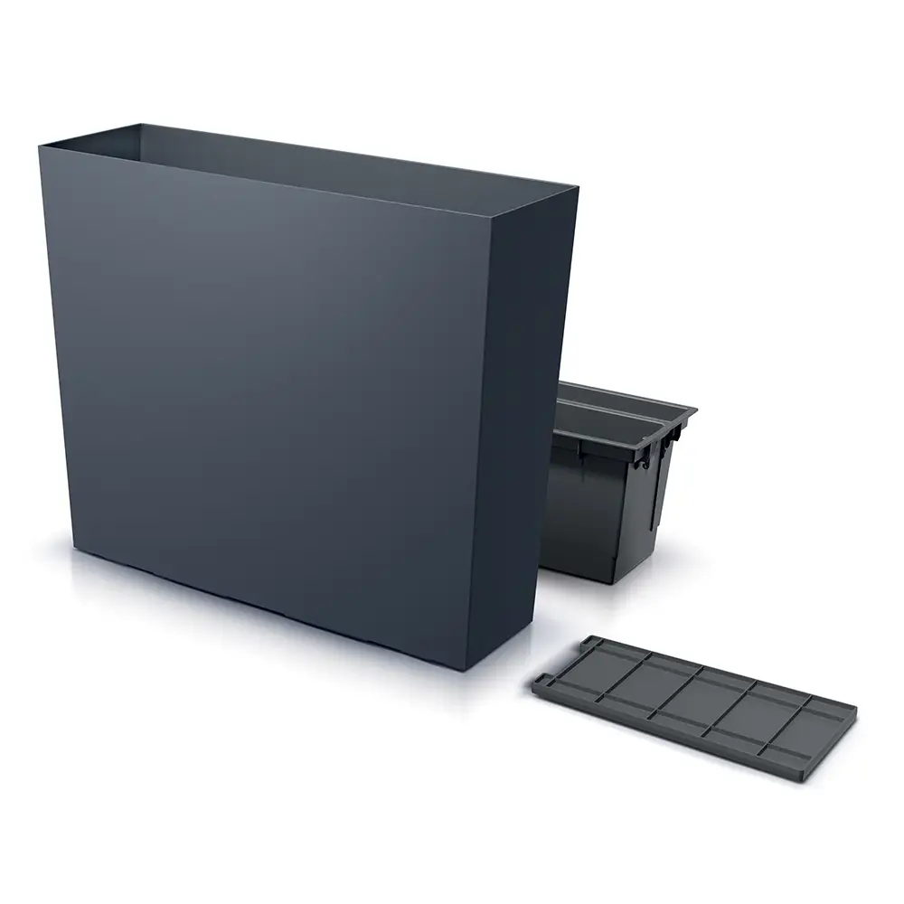 La jardinière de jardin est fabriquée en plastique durable résistant à l'humidité, aux rayons UV et aux conditions atmosphériques changeantes. L'insert interne facilite la plantation, limite la quantité de terreau nécessaire et simplifie l'entretien. Les proportions de la jardinière favorisent l'exposition des graminées ornementales, des vivaces et des compositions saisonnières plus hautes.