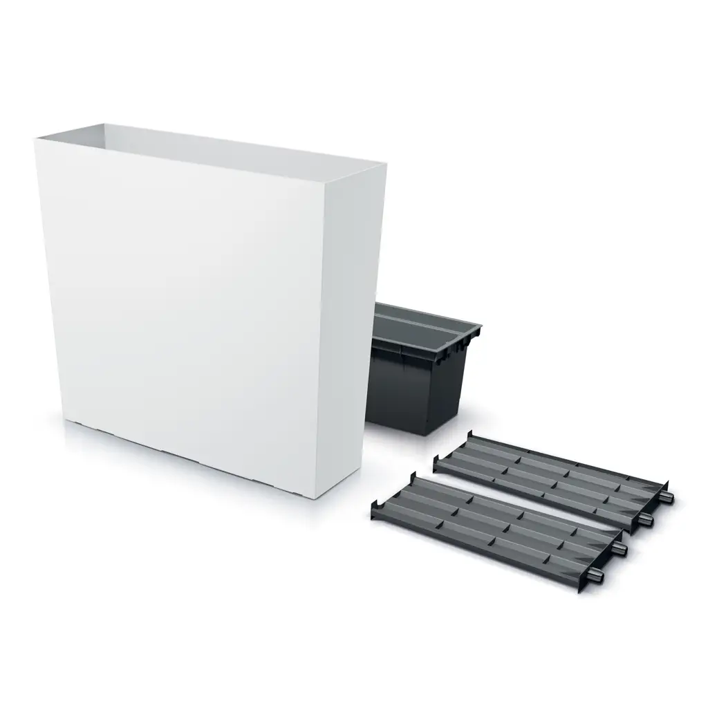 Fabriquée en plastique durable résistant à l'humidité, aux rayons UV et aux conditions atmosphériques variables, elle convient à une utilisation tout au long de la saison. L'insert interne limite la quantité de substrat nécessaire, facilite la plantation et l'entretien des plantes. Sa forme rectangulaire et allongée favorise la plantation d'herbes ornementales, d'arbustes ainsi que de compositions saisonnières plus importantes. C'est une proposition fonctionnelle aussi bien pour les espaces privés que commerciaux.