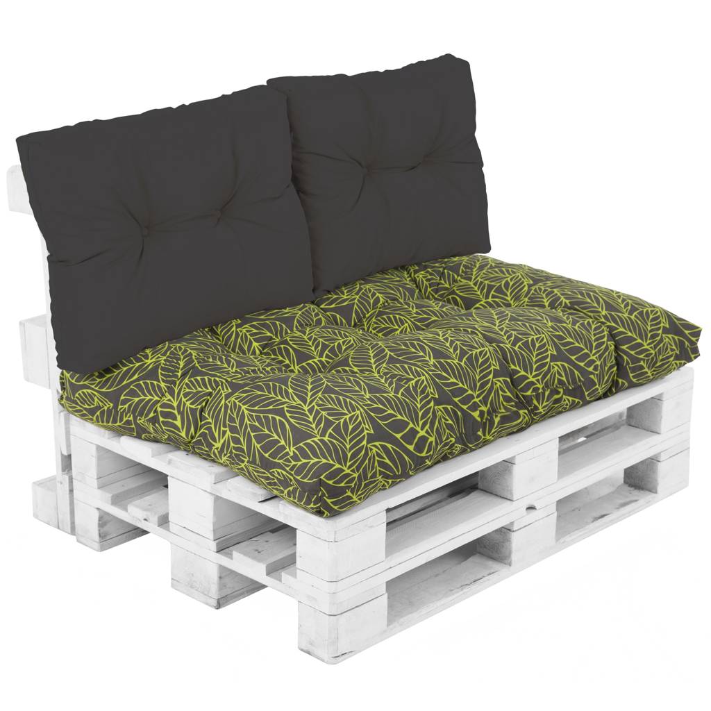 Les coussins sont fabriqués à partir d'un tissu durable qui est un mélange de polyester et de coton, ce qui assure une résistance à l'usage et une facilité d'entretien. Le garnissage en éponge élastique de type flocke est responsable de la douceur et de la résilience, aidant à conserver la forme pendant longtemps. Le capitonnage stabilise l'intérieur et influence l'esthétique du produit. La forme universelle permet au lot de bien s'adapter à la structure des meubles en palettes, favorisant un soutien dorsal confortable.