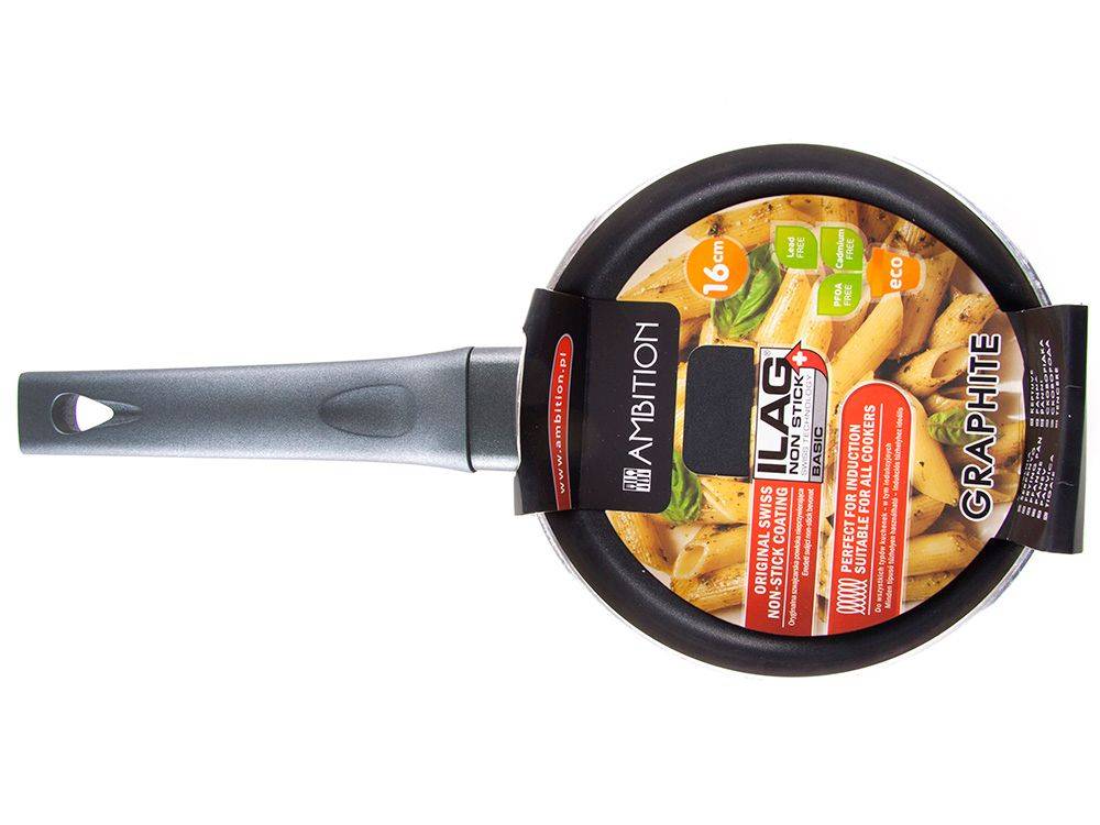 Le design de la ligne Graphite mise sur le minimalisme et la praticité. La poignée ergonomique de type Soft Touch tient non seulement parfaitement dans la main, mais assure également une prise stable et la sécurité, sans chauffer pendant le travail. Grâce à son fond universel, la poêle fonctionne parfaitement avec toutes les plaques de cuisson, du gaz à l'induction moderne, offrant une totale liberté dans le choix de la technique de friture.