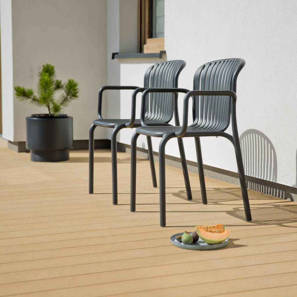 Les couleurs blanc et noir s'adaptent aux aménagements modernes de terrasse et de jardin.
