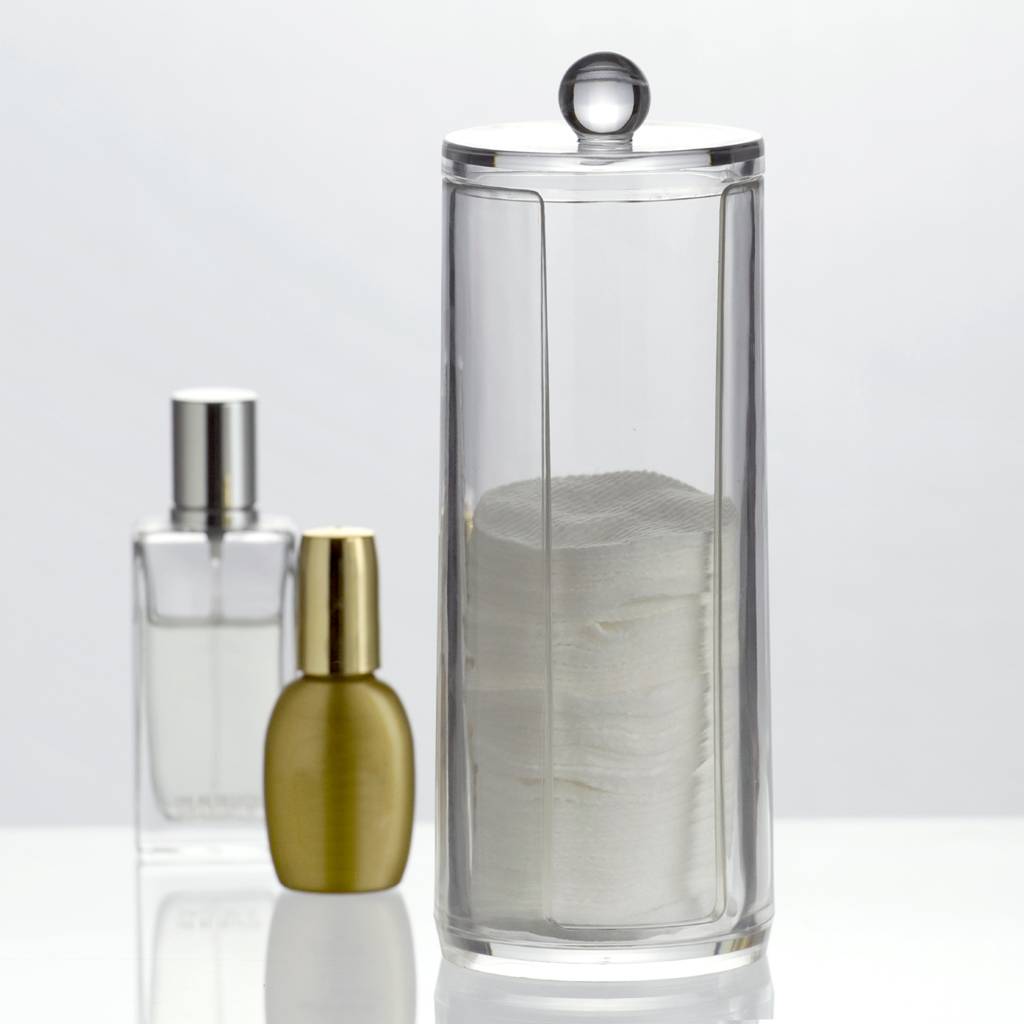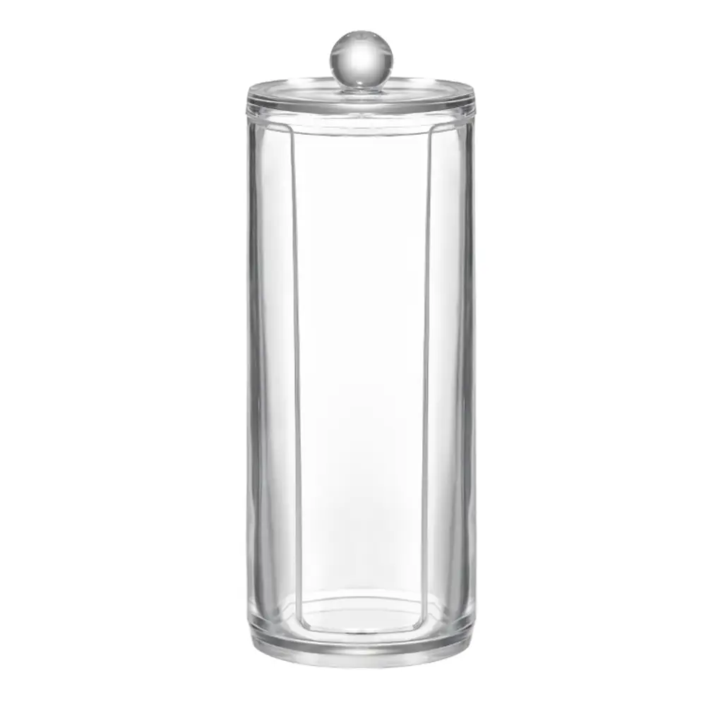 Le couvercle protège les cotons de la poussière et de l'humidité, tandis que les parois transparentes permettent de contrôler la quantité restante en temps réel. Grâce à sa conception simple, le récipient se présente bien sur un plan de travail, une étagère ou dans un meuble de salle de bain.