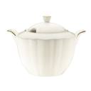 La collection Belle a été fabriquée en porcelaine de haute qualité avec une nuance crème chaude caractéristique. Ce matériau se distingue non seulement par son aspect noble, mais aussi par sa durabilité, répondant aux exigences d'un usage domestique. La surface de la vaisselle a été enrichie de reliefs ponctuels précis qui confèrent à l'ensemble une texture unique et une touche moderne. La forme raffinée des bords, soulignée par un liseré doré appliqué à la main, s'harmonise parfaitement avec les accessoires classiques et modernes, tels que les couverts dorés ou le verre en cristal. La sélection pratique des éléments permet de servir librement des repas à plusieurs plats, des entrées au dessert et au café.