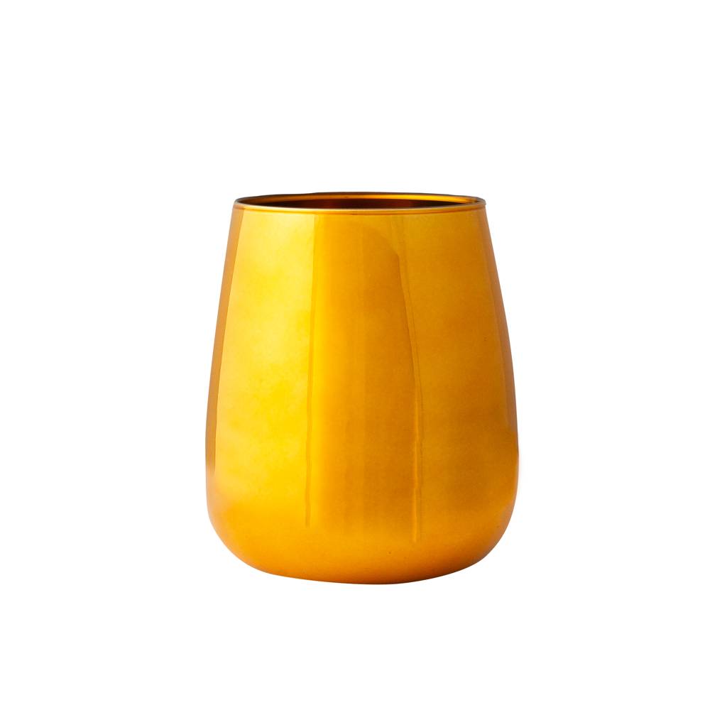 Le vase en verre doré est un accessoire décoratif pour l'intérieur qui attire l'attention par ses couleurs intenses et sa forme simple. Il peut servir de décoration autonome ou de récipient pour des compositions végétales, apportant un accent distinctif à l'aménagement.